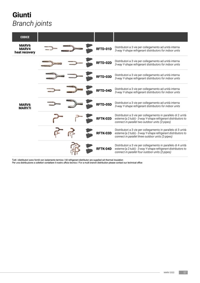 Per una distribuzione a collettori contattare il nostro ufficio tecnico / For a multi branch distribution please contact our technical office