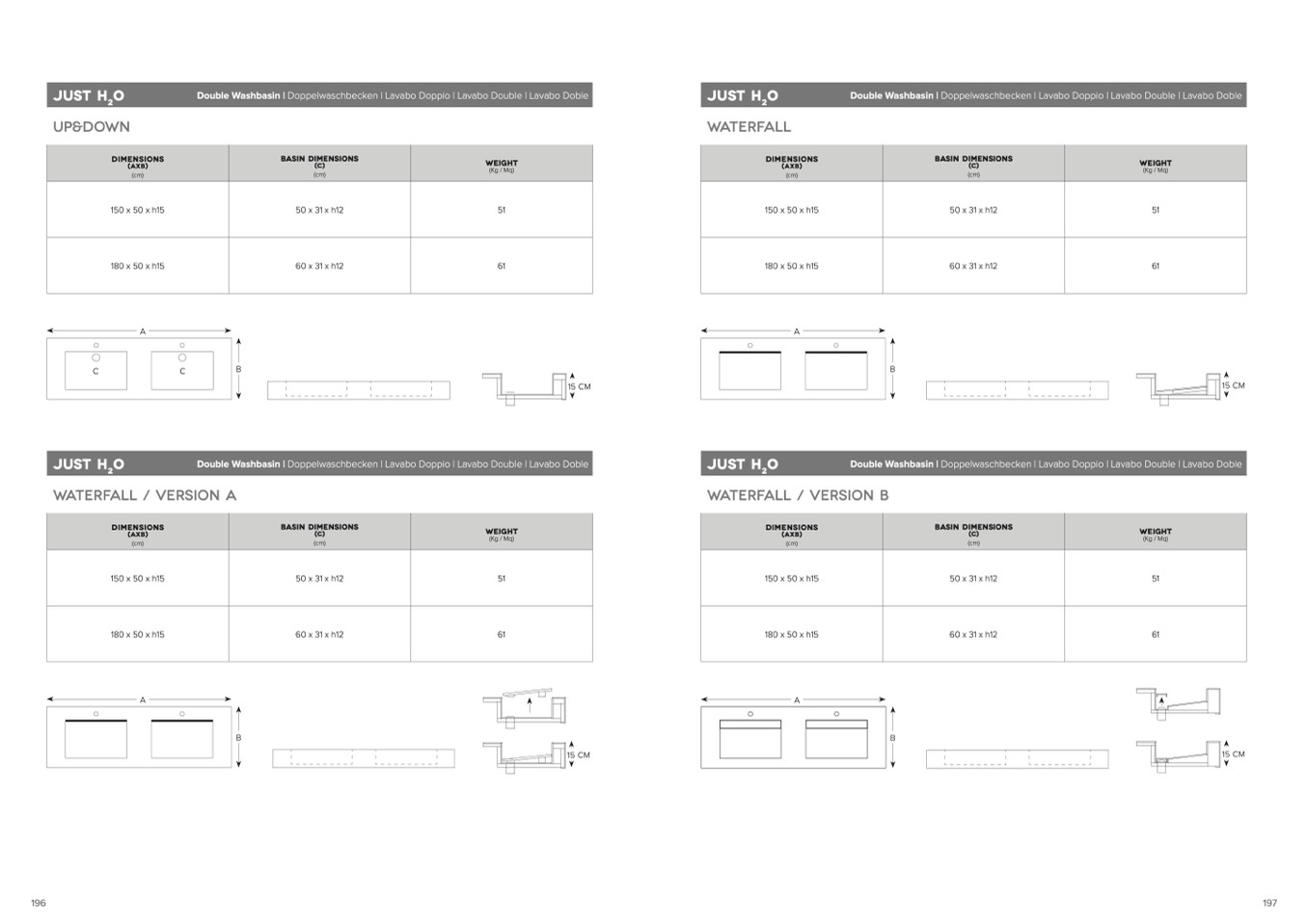 Double Washbasin | Doppelwaschbecken | Lavabo Doppio | Lavabo Double | Lavabo Doble