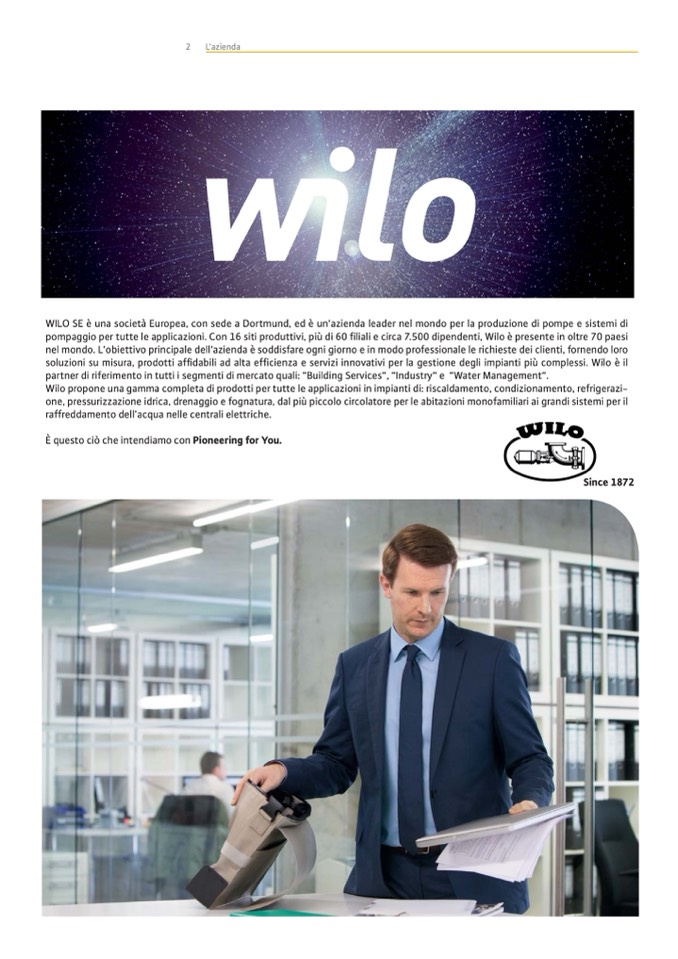 WILO SE è una società Europea, con sede a Dortmund, ed è un‘azienda leader nel mondo per la produzione di pompe e sistemi di