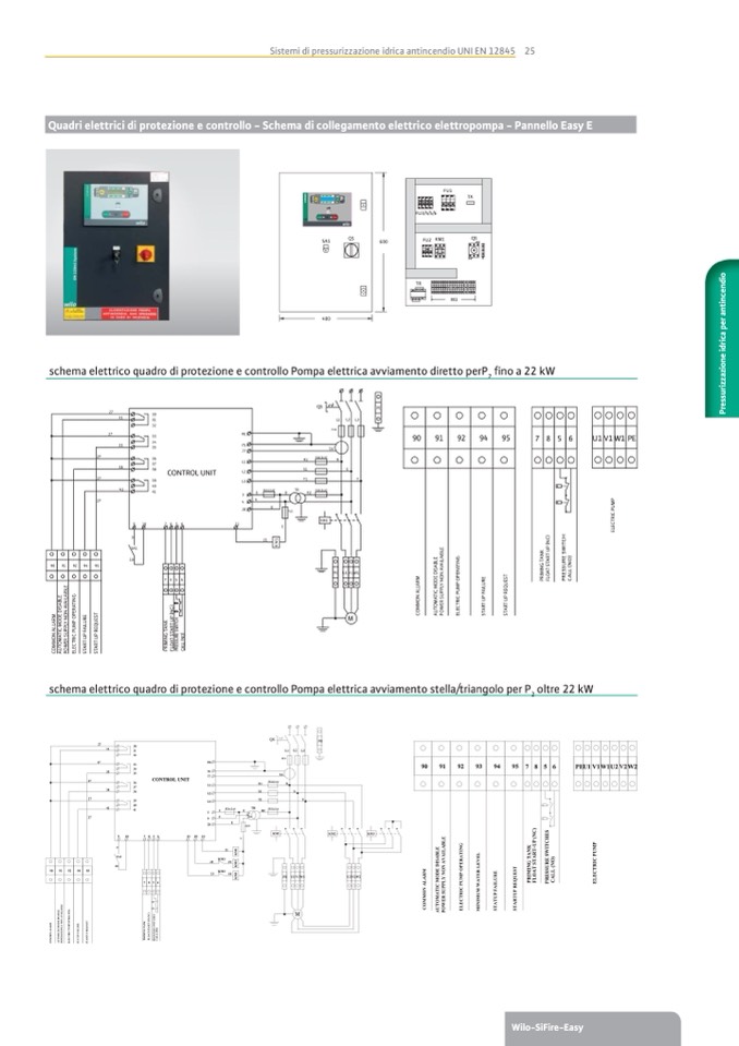 Quadri elettrici di protezione e controllo - Schema di collegamento elettrico elettropompa - Pannello Easy E