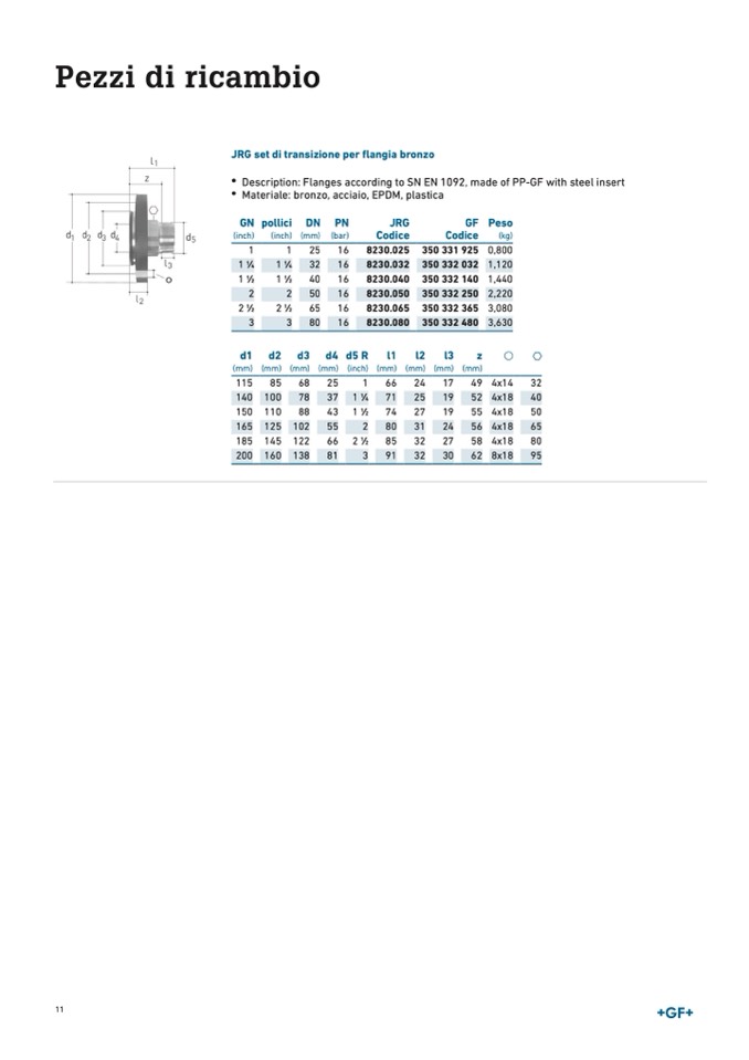 Description: Flanges according to SN EN 1092, made of PP-GF with steel insert