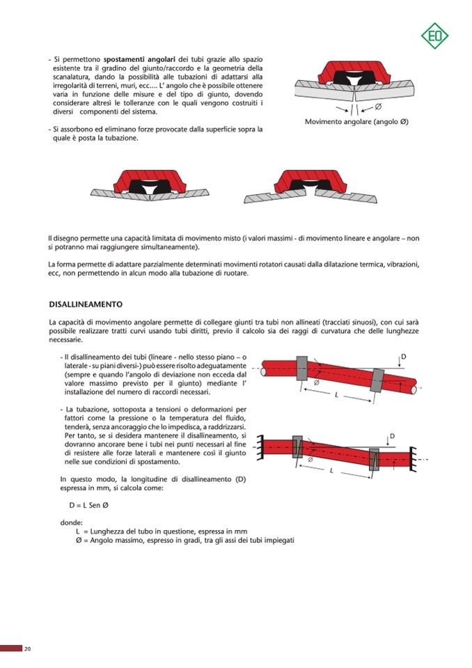 La capacità di movimento angolare permette di collegare giunti tra tubi non allineati (tracciati sinuosi), con cui sarà