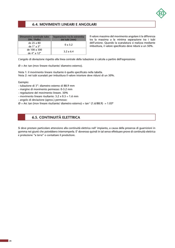 L’angolo di deviazione rispetto alla linea centrale della tubazione si calcola a partire dell’espressione: