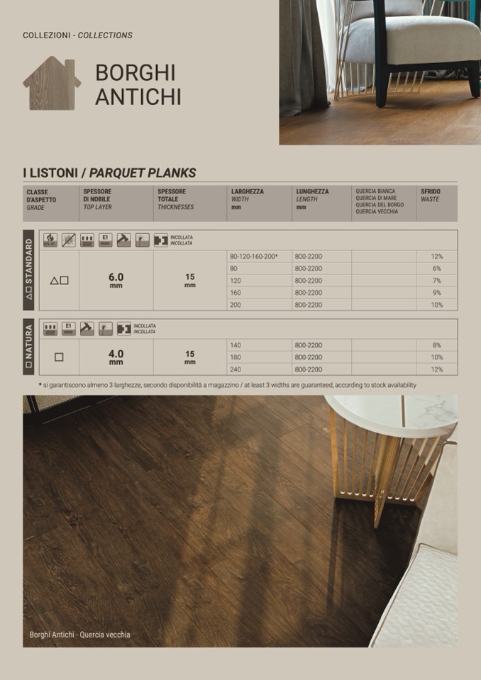 * si garantiscono almeno 3 larghezze, secondo disponibilità a magazzino / at least 3 widths are guaranteed, according to stock availability