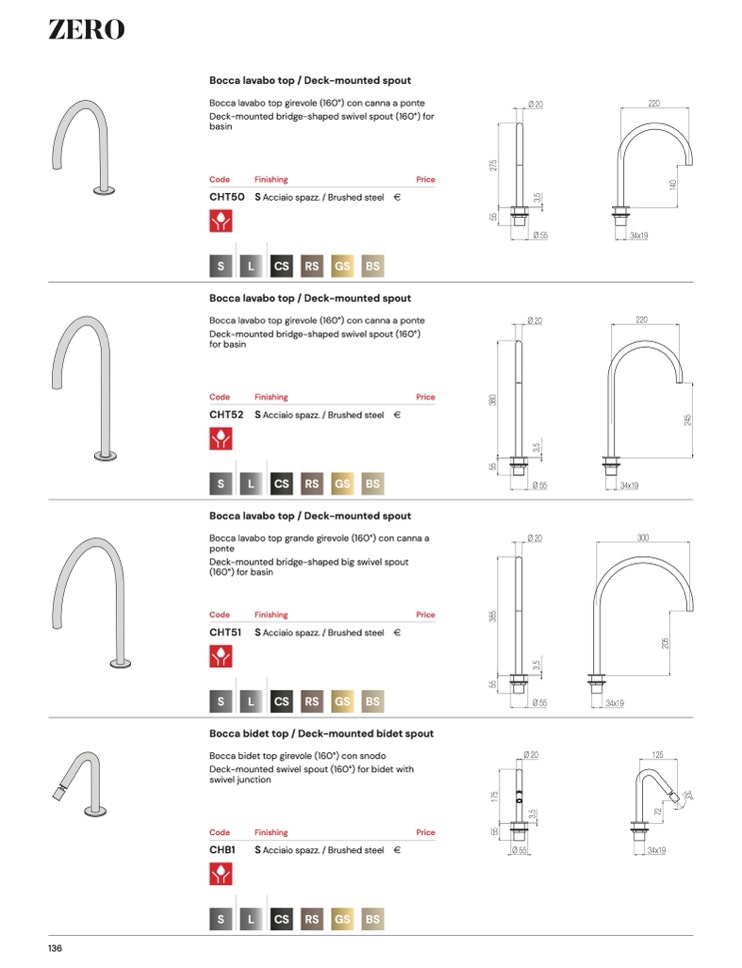 CHT52 S Acciaio spazz. / Brushed steel
