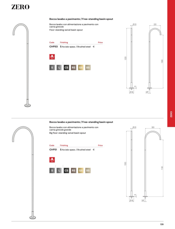 Bocca lavabo a pavimento / Free-standing basin spout