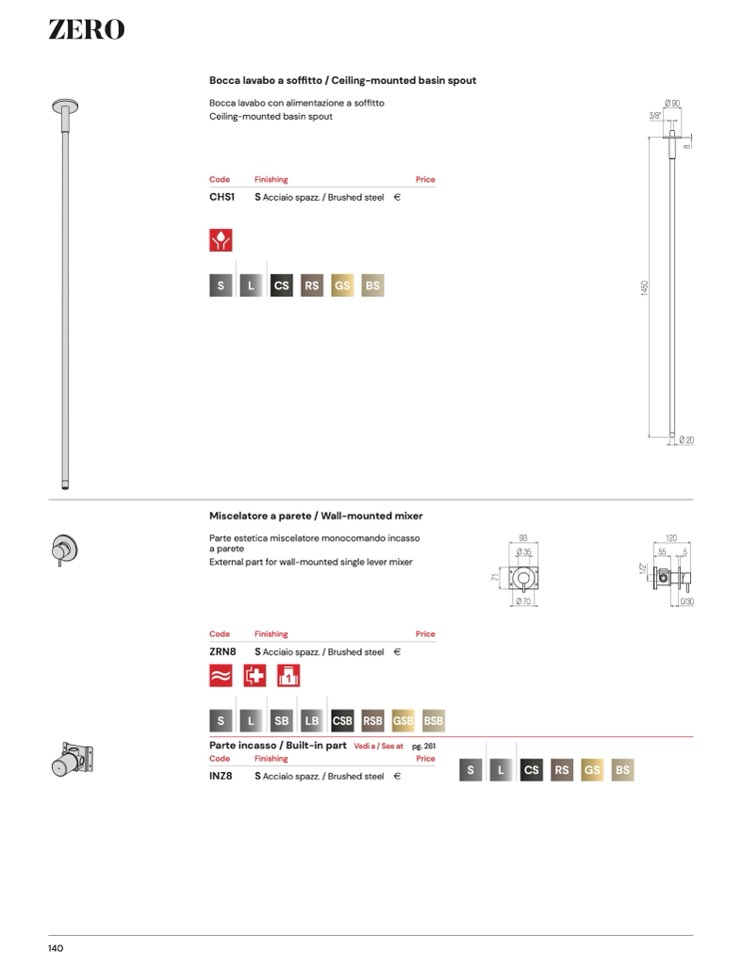 Bocca lavabo a soffitto / Ceiling-mounted basin spout