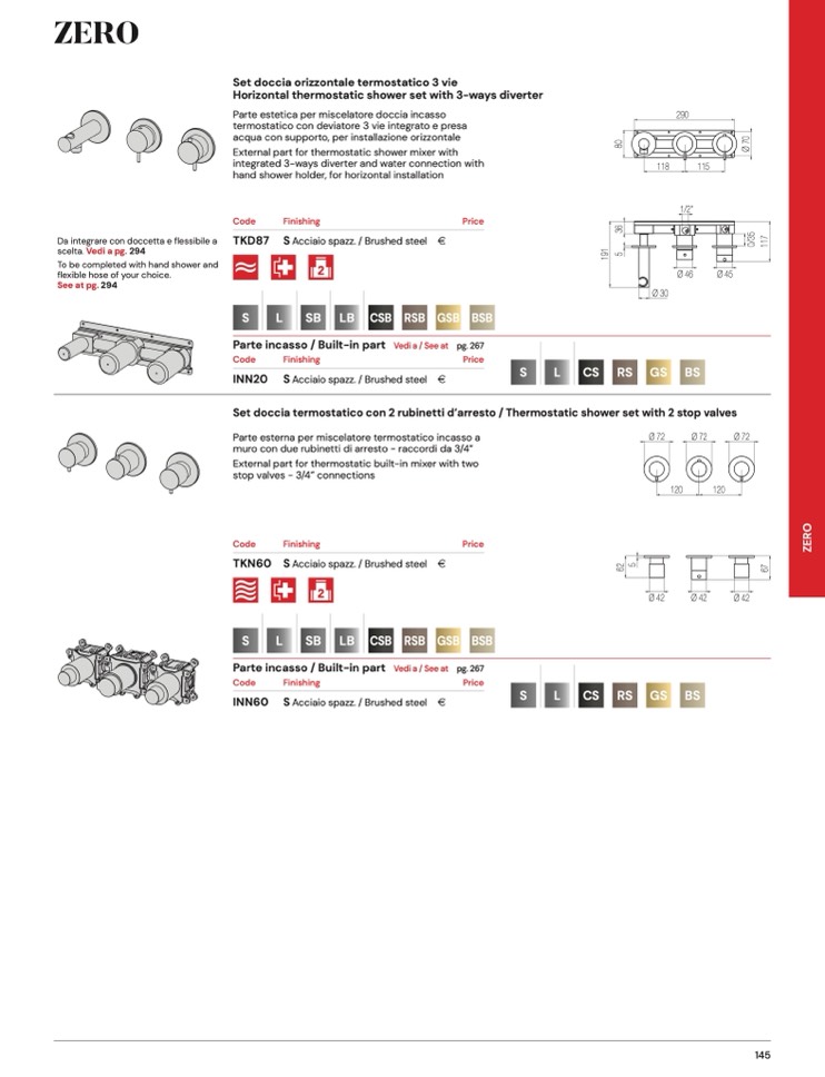 Set doccia termostatico con 2 rubinetti d’arresto / Thermostatic shower set with 2 stop valves