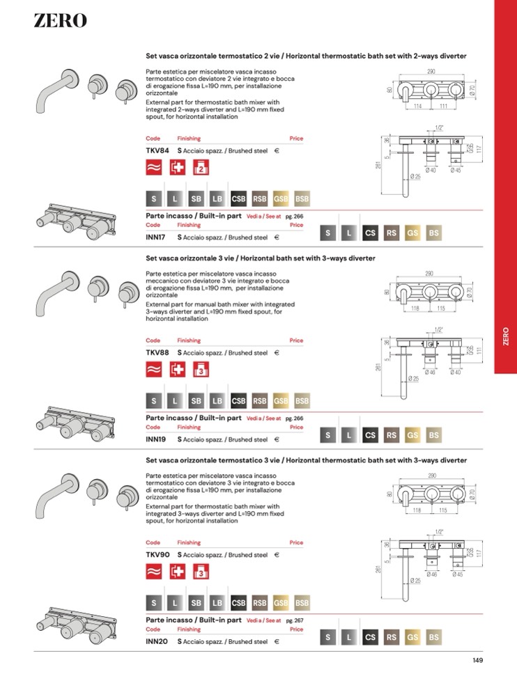Set vasca orizzontale termostatico 3 vie / Horizontal thermostatic bath set with 3-ways diverter