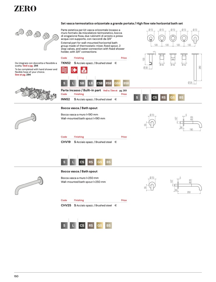 Set vasca termostatico orizzontale a grande portata / High flow rate horizontal bath set