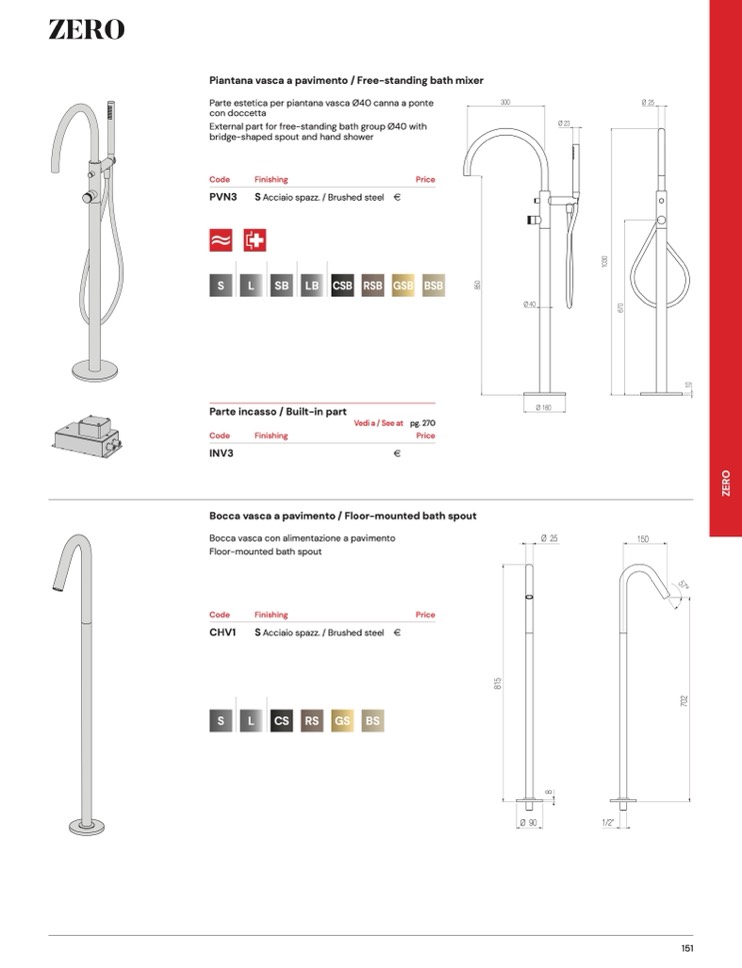 Bocca vasca a pavimento / Floor-mounted bath spout