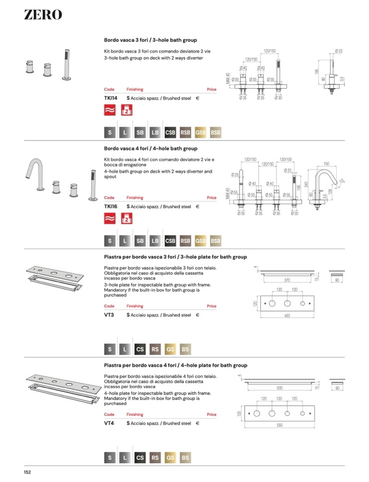 Piastra per bordo vasca 4 fori / 4-hole plate for bath group