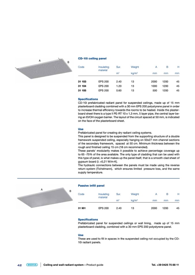CD-10i prefabricated radiant panel for suspended ceilings, made up of 15 mm