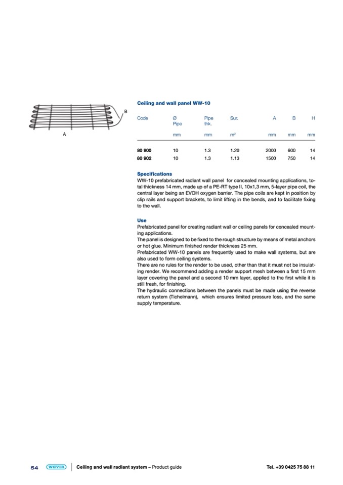 WW-10 prefabricated radiant wall panel for concealed mounting applications, to-