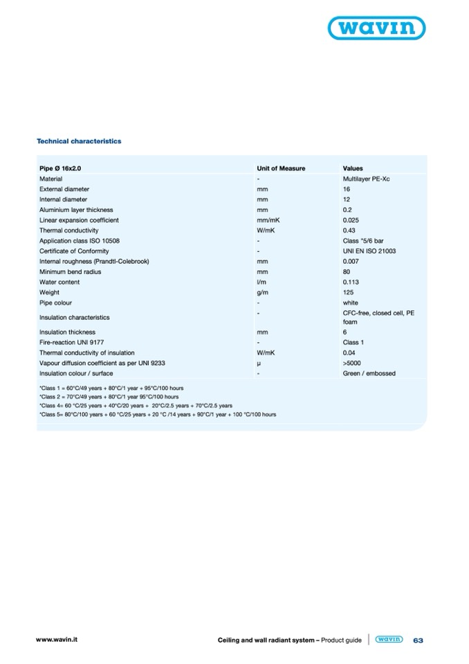 *Class 5= 80°C/100 years + 60 °C/25 years + 20 °C /14 years + 90°C/1 year + 100 °C/100 hours