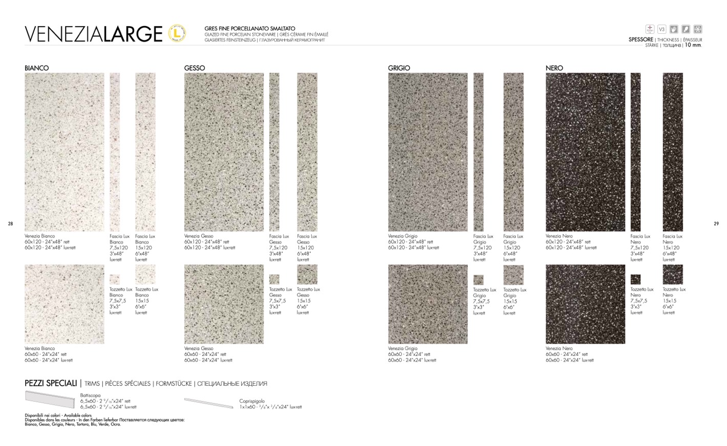 Bianco, Gesso, Grigio, Nero, Tortora, Blu, Verde, Ocra.