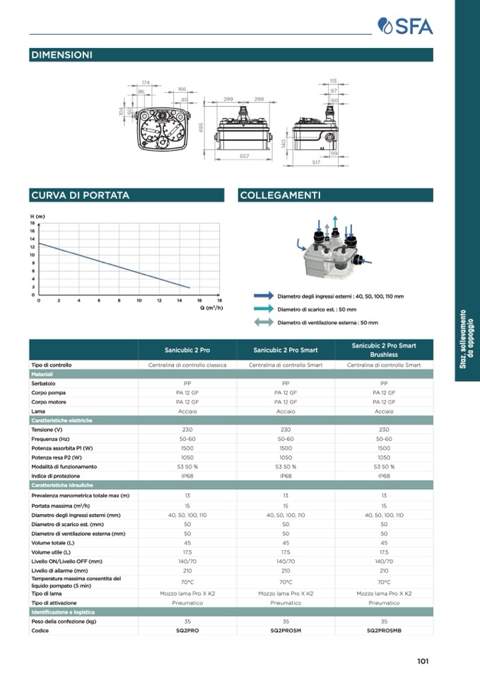 Diametro degli ingressi esterni : 40, 50, 100, 110 mm