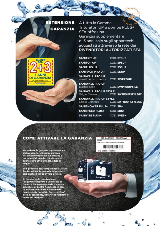 distribuiti dai Rivenditori Autorizzati SFA SANITRIT