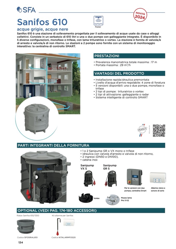 collettivi. Consiste in un serbatoio di 610 litri e una o due pompe con galleggiante integrato. È disponibile in