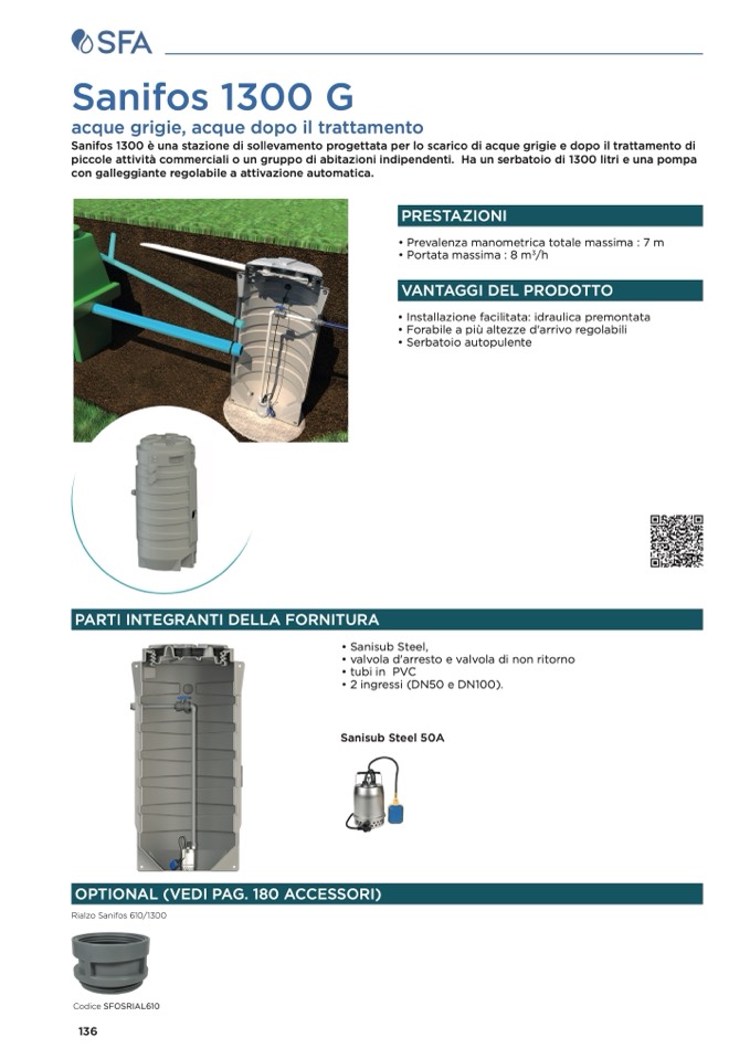 piccole attività commerciali o un gruppo di abitazioni indipendenti. Ha un serbatoio di 1300 litri e una pompa