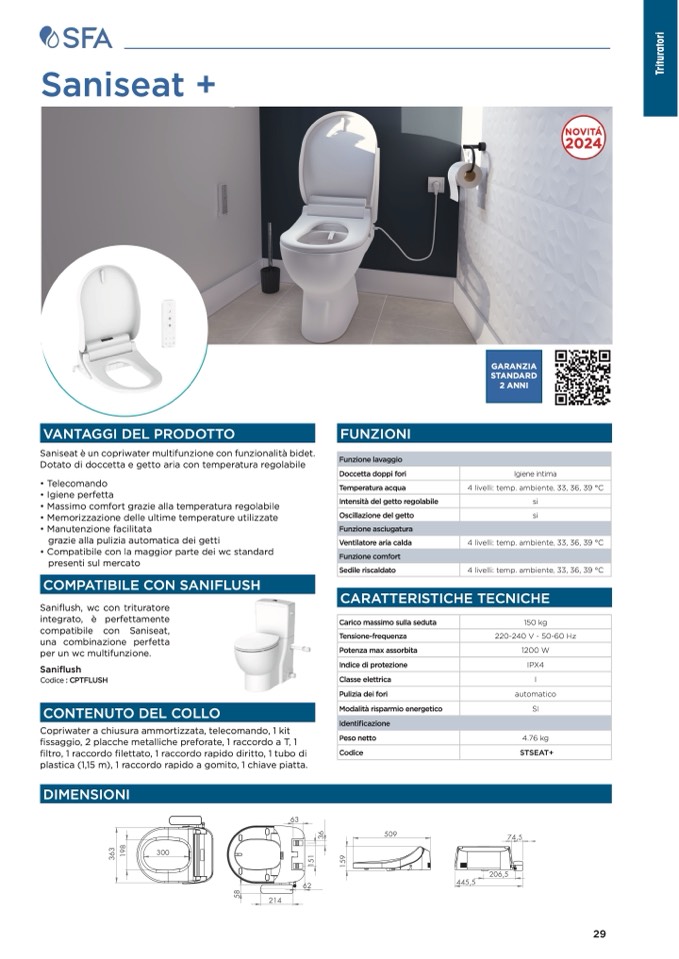 Saniseat è un copriwater multifunzione con funzionalità bidet.