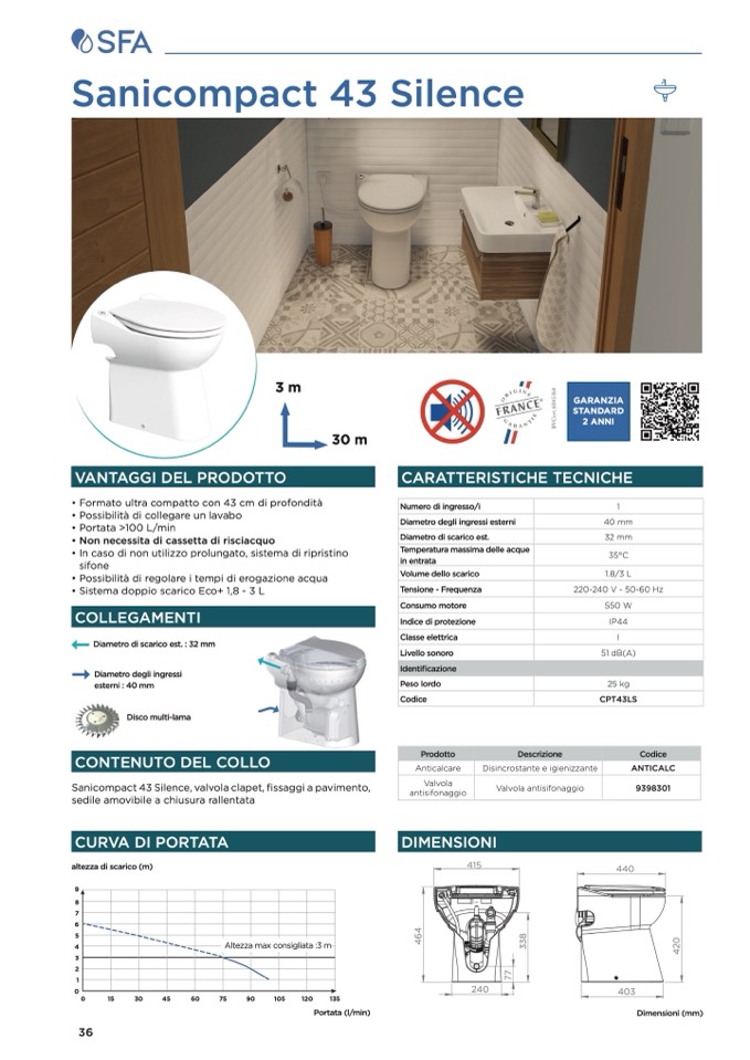 Sanicompact 43 Silence, valvola clapet, fissaggi a pavimento,