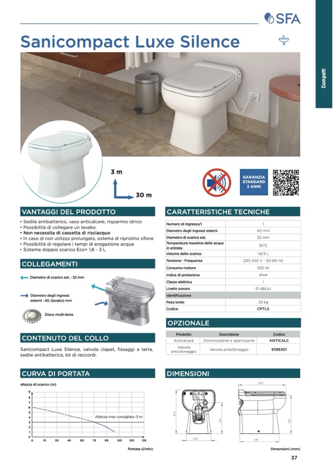 Sanicompact Luxe Silence, valvola clapet, fissaggi a terra,