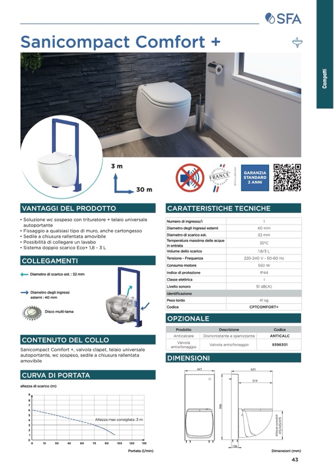 • Soluzione wc sospeso con trituratore + telaio universale