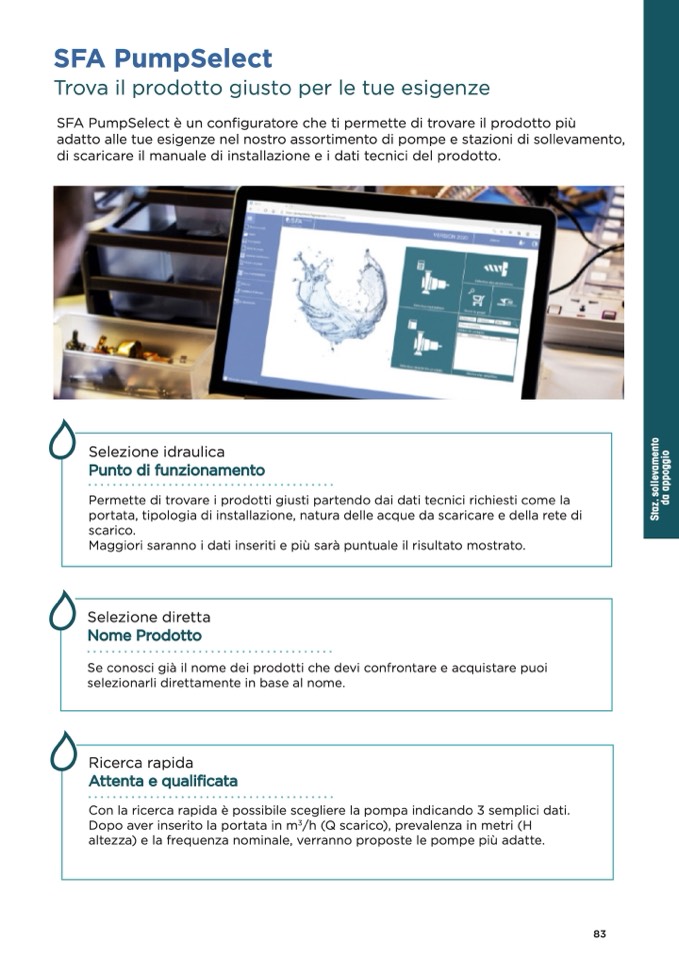 SFA PumpSelect è un configuratore che ti permette di trovare il prodotto più