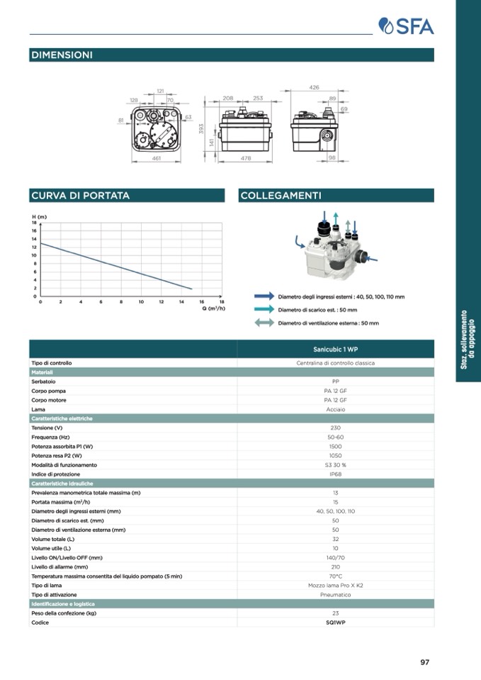 Diametro degli ingressi esterni : 40, 50, 100, 110 mm