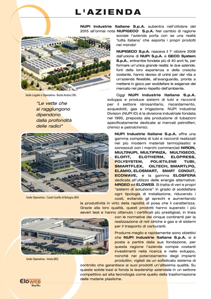 acquedotti, gas e irrigazione. NUPI Industrial