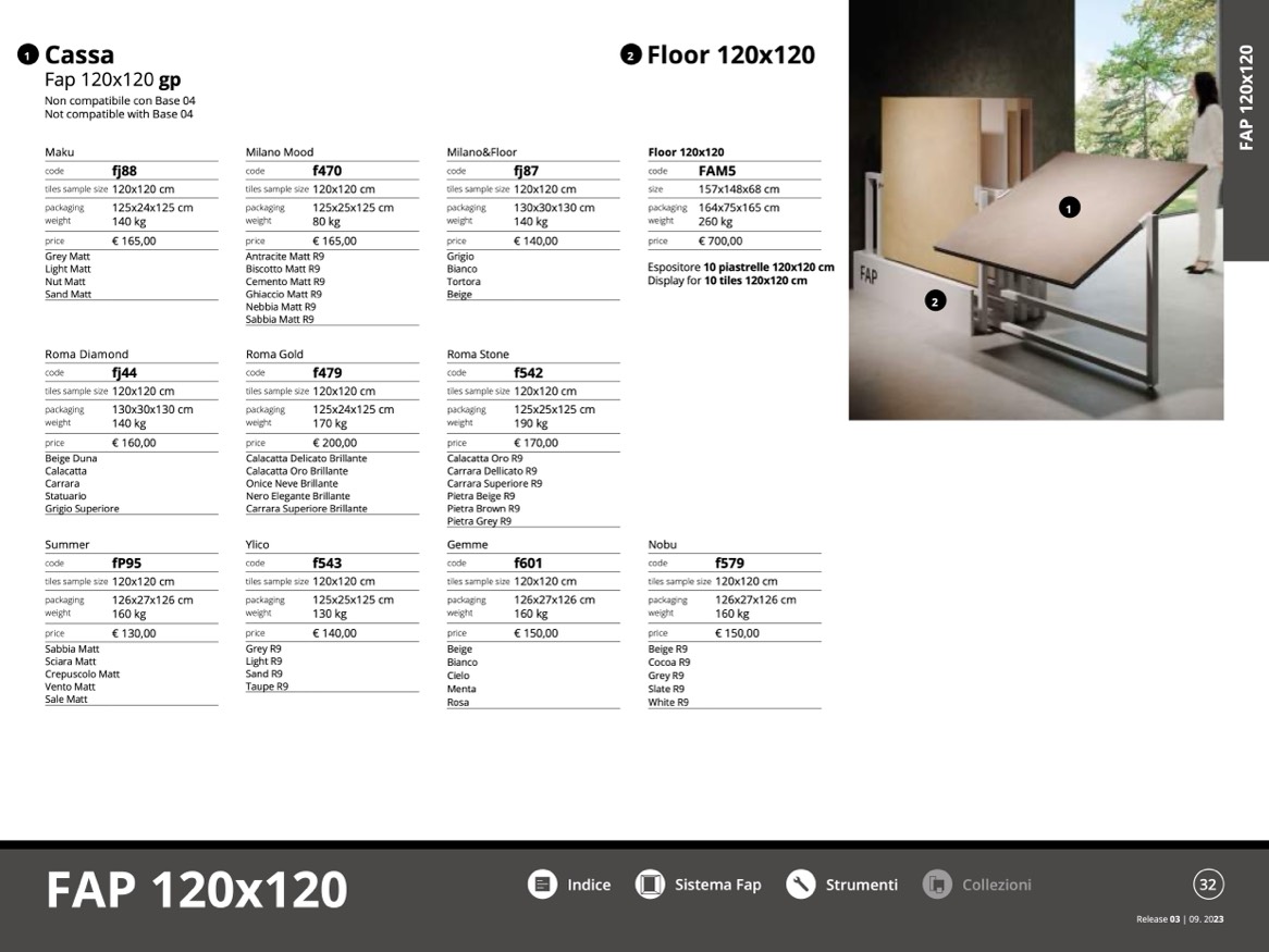 Espositore 10 piastrelle 120x120 cm