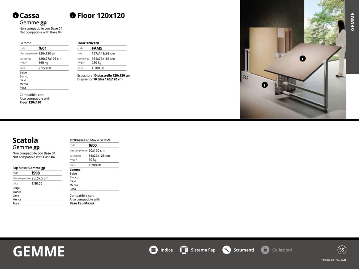 Espositore 10 piastrelle 120x120 cm