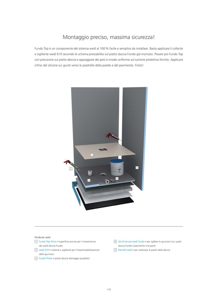 e sigillante wedi 610 secondo lo schema prestabilito sul piatto doccia Fundo già montato. Posare poi Fundo Top