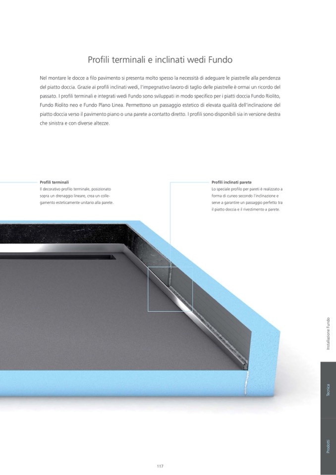 passato. I profili terminali e integrati wedi Fundo sono sviluppati in modo specifico per i piatti doccia Fundo Riolito,