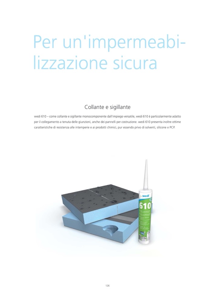 per il collegamento a tenuta delle giunzioni, anche dei pannelli per costruzione. wedi 610 presenta inoltre ottime