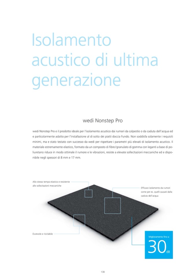 wedi Nonstep Pro e il prodotto ideale per l’isolamento acustico dai rumori da calpestio o da caduta dell’acqua ed