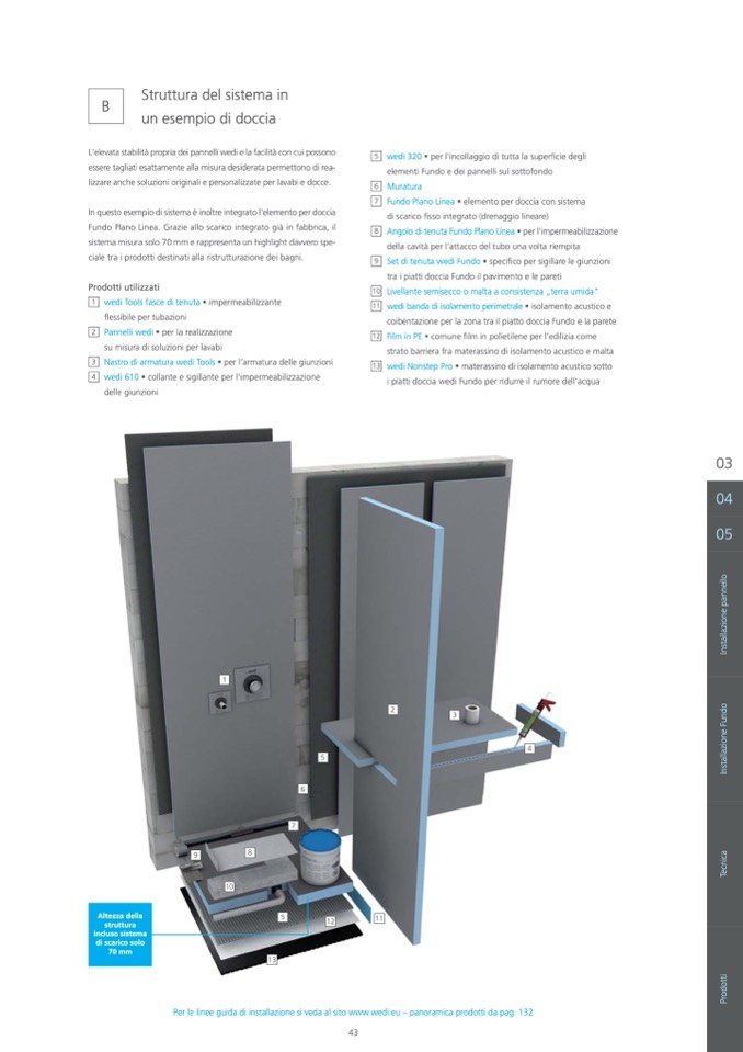 Per le linee guida di installazione si veda al sito www.wedi.eu – panoramica prodotti da pag. 132