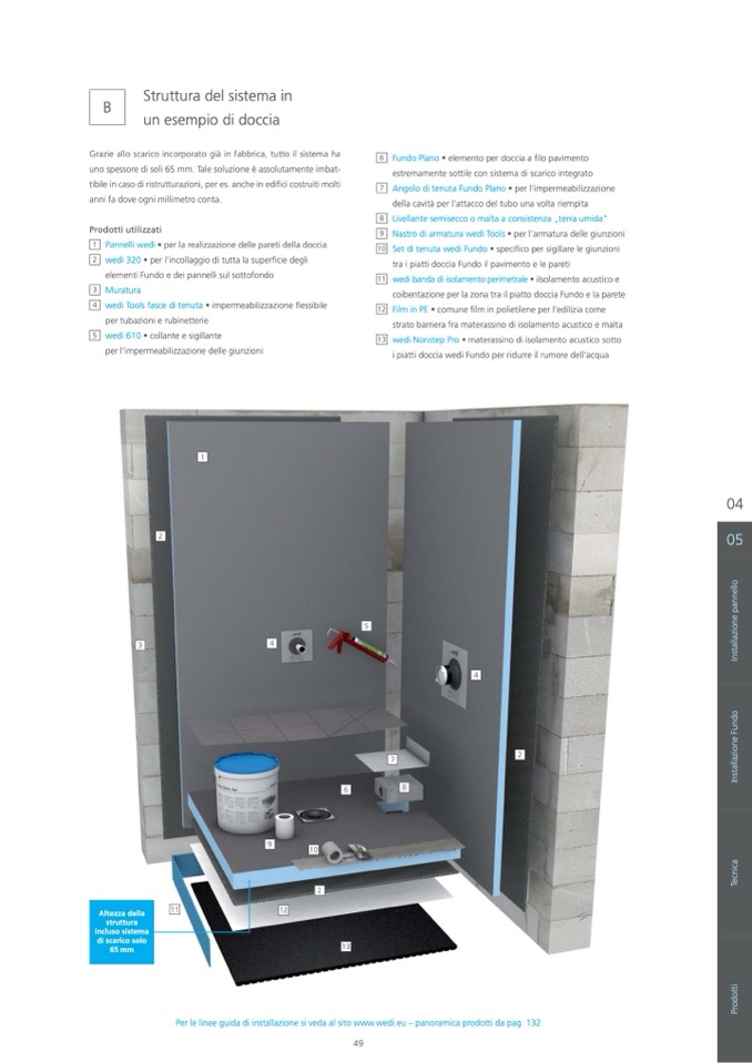 Per le linee guida di installazione si veda al sito www.wedi.eu – panoramica prodotti da pag. 132