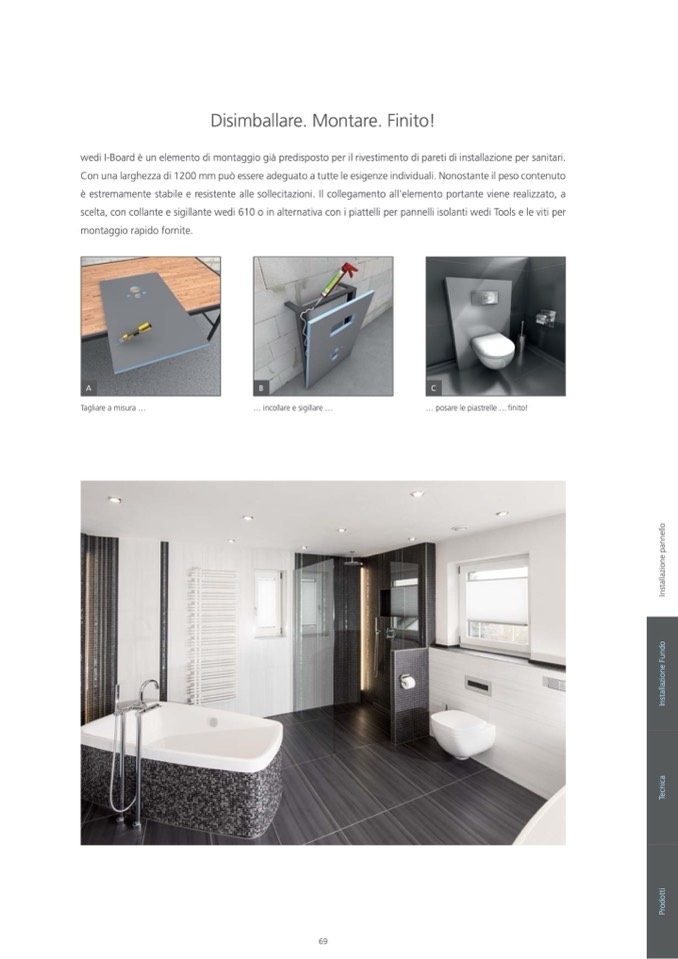 wedi I-Board è un elemento di montaggio già predisposto per il rivestimento di pareti di installazione per sanitari.