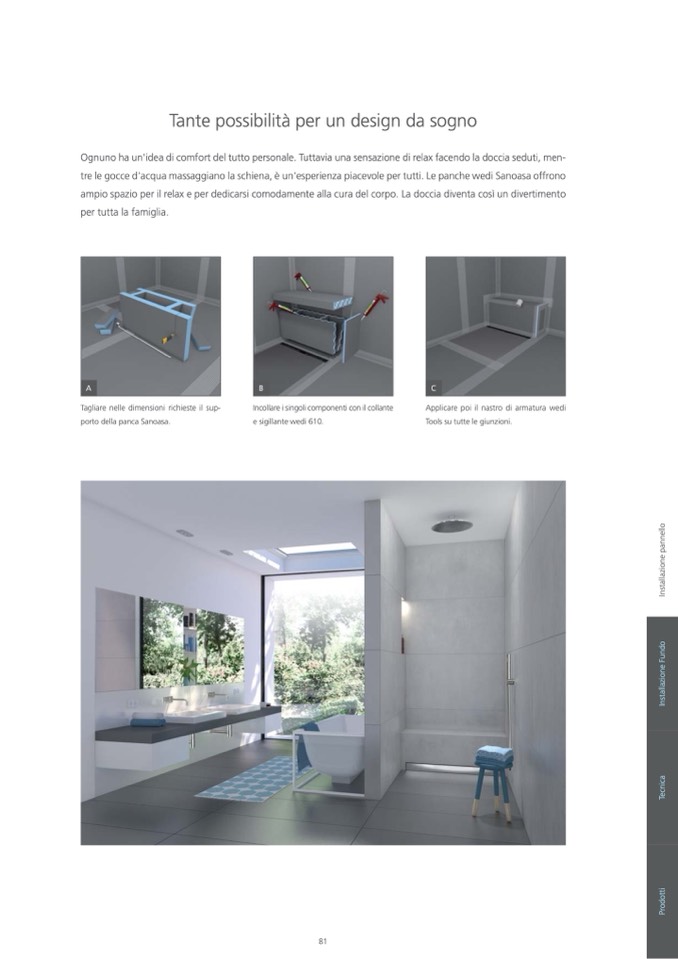 tre le gocce d'acqua massaggiano la schiena, è un'esperienza piacevole per tutti. Le panche wedi Sanoasa offrono