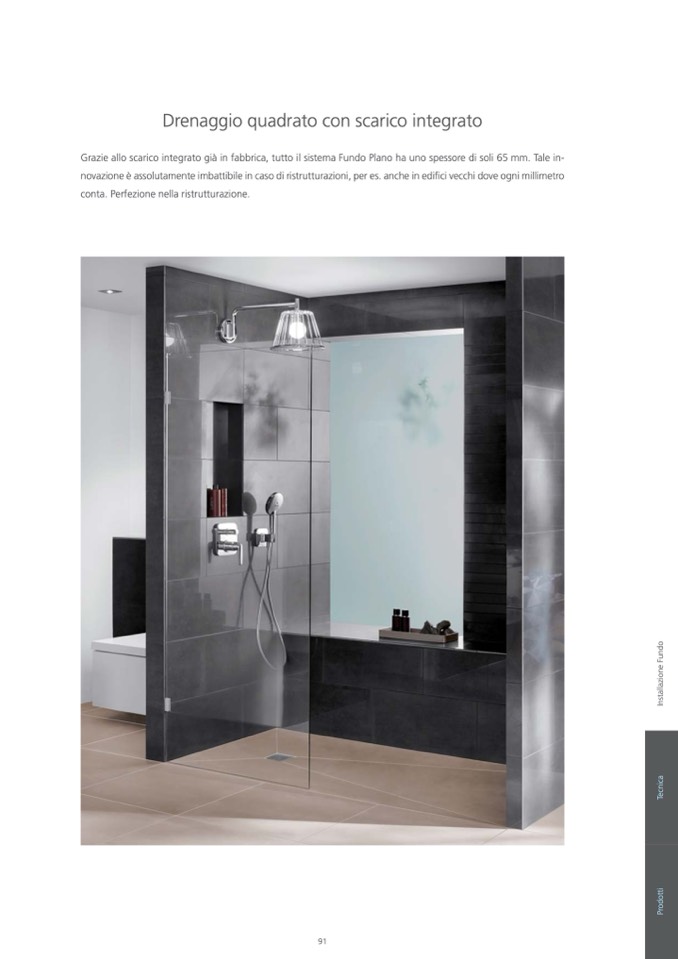 Grazie allo scarico integrato già in fabbrica, tutto il sistema Fundo Plano ha uno spessore di soli 65 mm. Tale in-