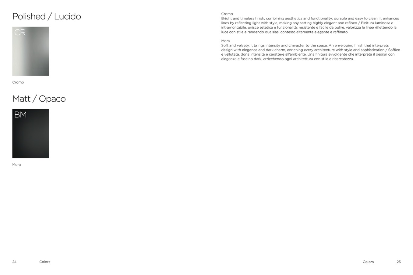 lines by reflecting light with style, making any setting highly elegant and refined / Finitura luminosa