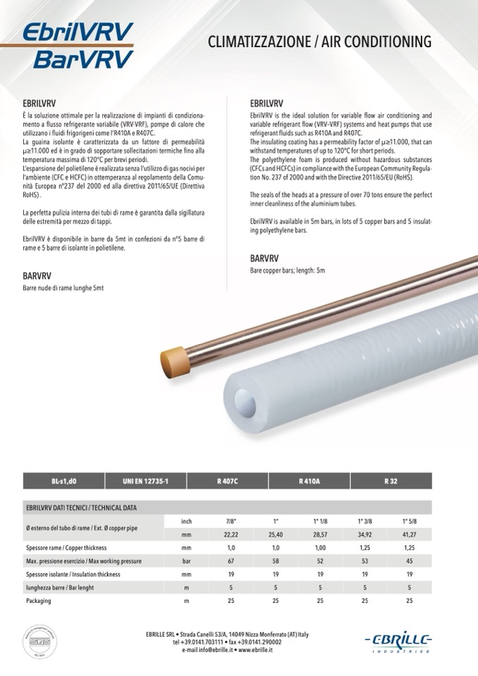 EbrilVRV is available in 5m bars, in lots of 5 copper bars and 5 insulat-