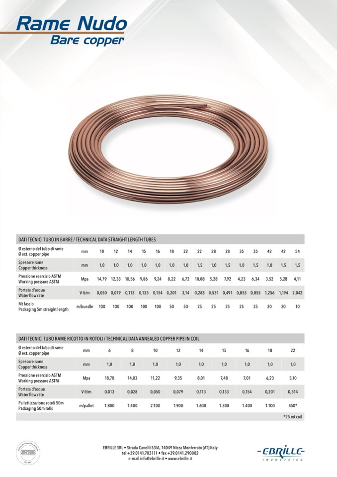 DATI TECNICI TUBO RAME RICOTTO IN ROTOLI / TECHNICAL DATA ANNEALED COPPER PIPE IN COIL