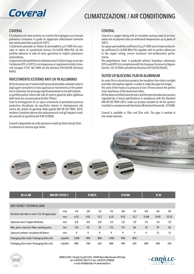 Coveral is a copper tubing with an insulation coating made of an inno-