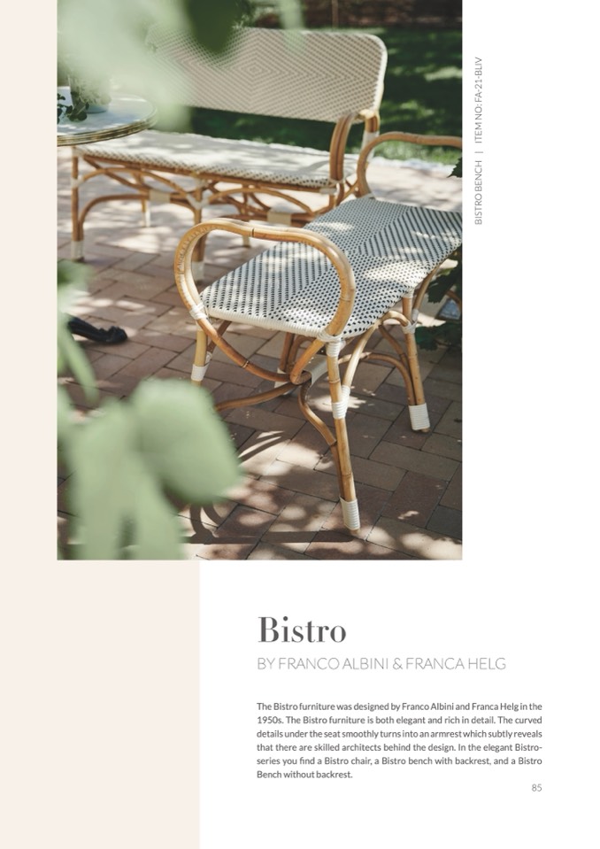 series you find a Bistro chair, a Bistro bench with backrest, and a Bistro