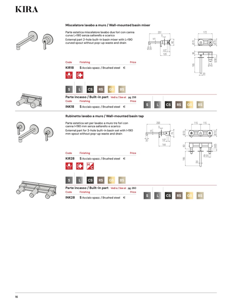 Rubinetto lavabo a muro / Wall-mounted basin tap