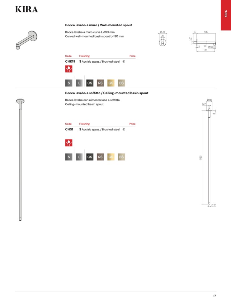 Bocca lavabo a soffitto / Ceiling-mounted basin spout