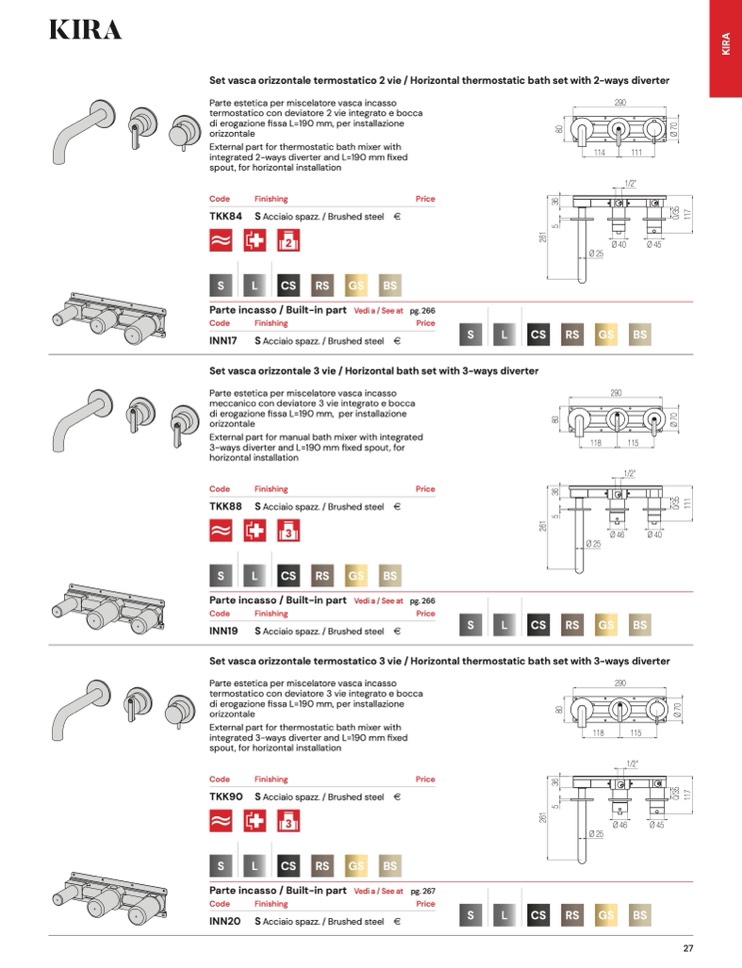 Set vasca orizzontale termostatico 3 vie / Horizontal thermostatic bath set with 3-ways diverter